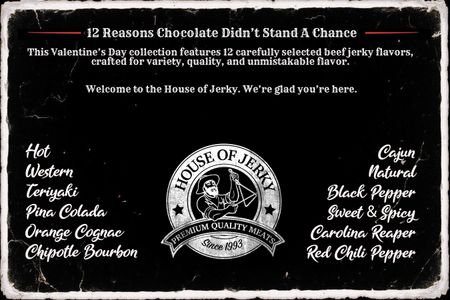 This Valentine’s Day, gift something bold. The House of Jerky Love at First Bite Gift Box is packed with 12 premium jerky flavors, curated for people who like their snacks rich, savory, and worth slowing down for.